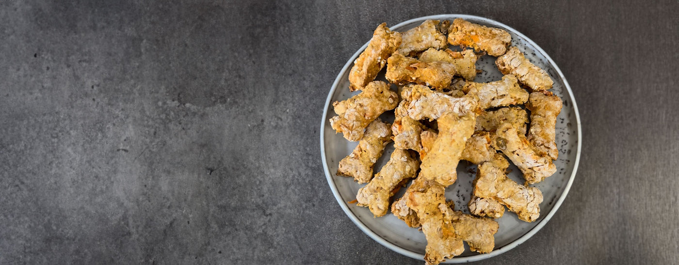 These homemade pumpkin cookies are packed with natural ingredients like pumpkin puree and grated carrots, and a few teaspoons of our Tree Barks Powder for added digestive support. Not only are they easy to make, but they’re also a tasty snack that’ll have your dog wagging their tail for more!